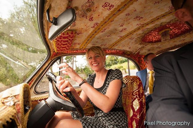 We first met Helen & Vin over a year ago when they made a special trip from Swindon to meet me and my ‘in the flesh’. I’ve been looking forward to their wedding ever since! Not only did we drive Dad & Bride to the wedding at Winkworth Farm near Malmesbury in Wiltshire, we were also on hand to take pictures of their guests with the car. All part of our unique and fun service. Many congrats to these beautiful two. We loved being a small but important part of their day. Here’s what Helen had to say when afterwards: …”Hi Suzie! Thank you so much for helping make our day so special, all the guests were very impressed with your car and it was definitely a