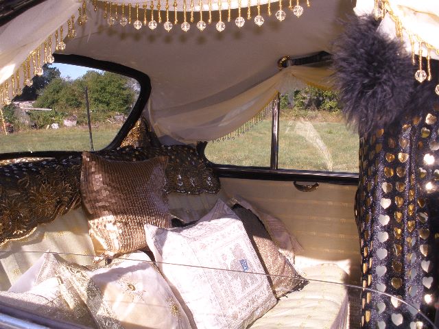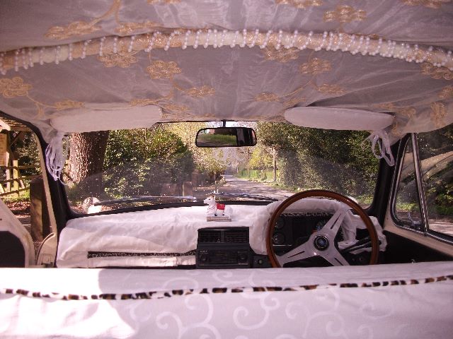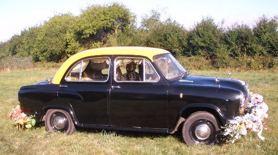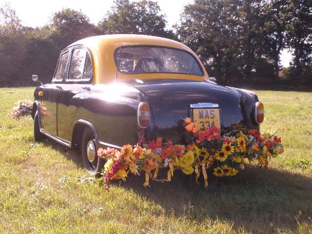 As well as the cream Amby, “Monty” in his Calcutta taxi strip of black with yellow roof us also available to hire. He draws attention and smiles from passers by who cannot resist a peek inside. The bumper flowers are optional on both cars.